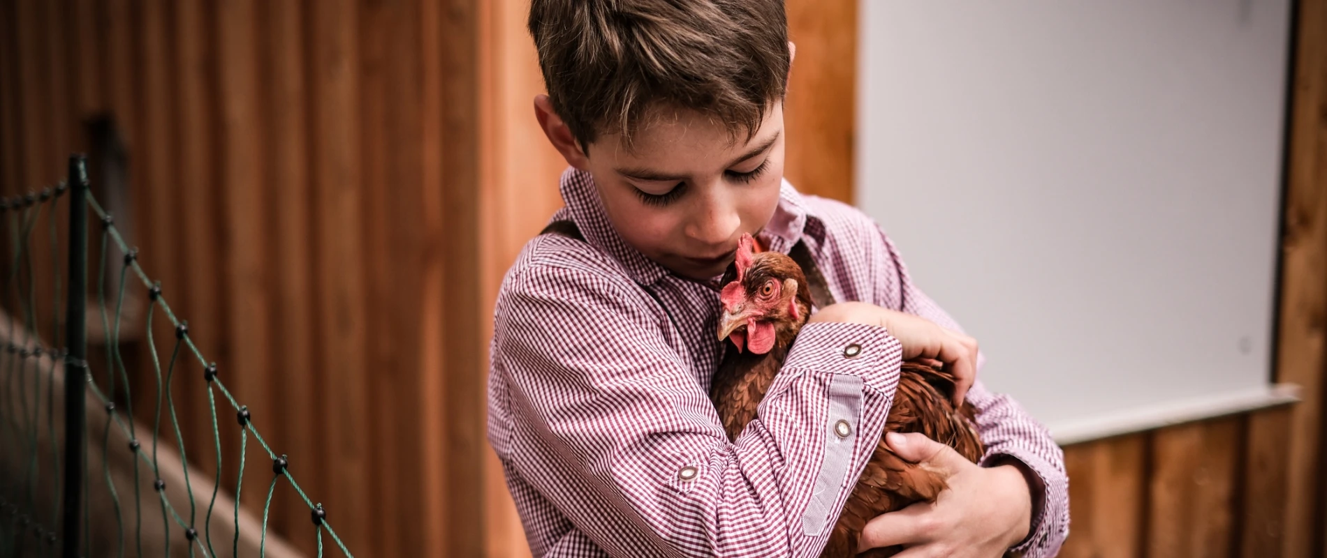 Für Kinder ist unser Hof ein kleines Paradies: Tiere streicheln, beim Füttern helfen, im Heu springen – einfach mitmachen und erleben.